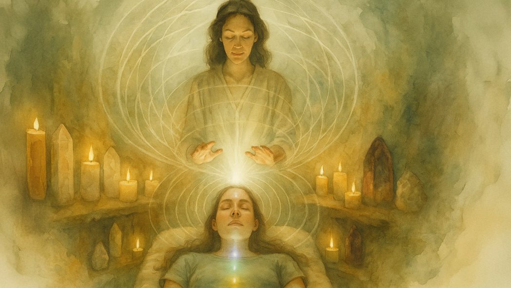 Transfer blând de energie universală prin palme. Restabilește fluxul vital și aduce relaxare profundă.